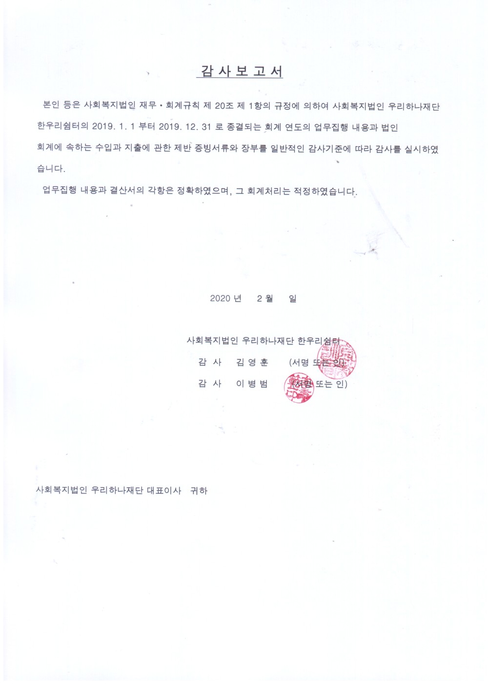 2020년도 감사보고서-한우리쉼터 페이지 정보 작성자 관리자 댓글 0건 조회 2,385회 작성일 21-01-19 05:17 본문 2020년도 감사보고서-한우리쉼터 목록 댓글목록 댓글목록 등록된 댓글이 없습니다.